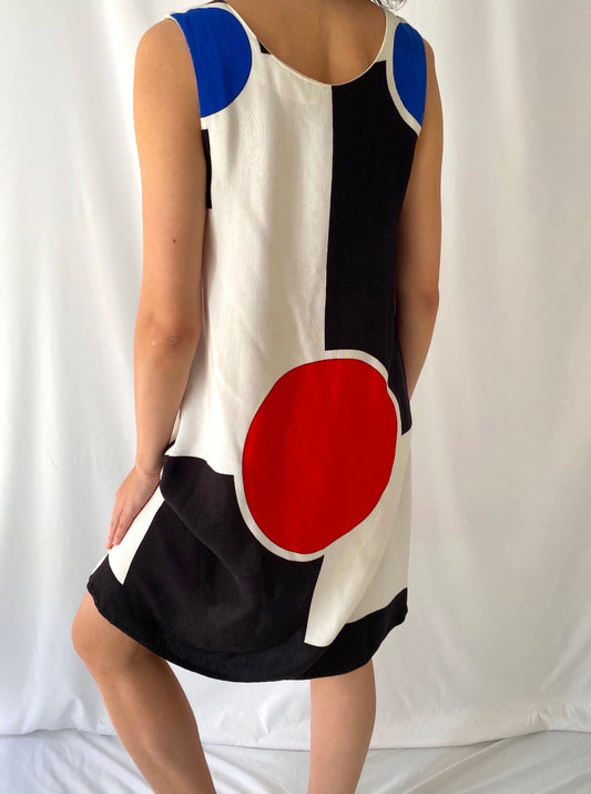 60s 70s vintage multicolor abstract geometric midi dress – small, medium