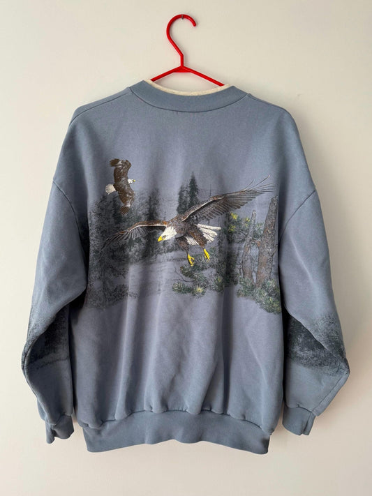 90s vintage blue eagle nature graphic pullover sweater – large | unisex cottage wildlife sweatshirt