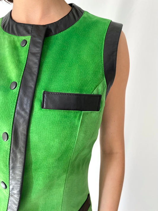 90s vintage danier green neon suede leather button up vest – small | bright casual retro waistcoat canada