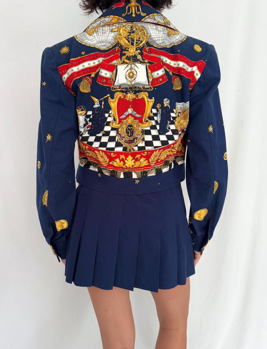 90s vintage multicolor abstract baroque patterned cropped blazer – small medium | unique statement boxy cotton jacket