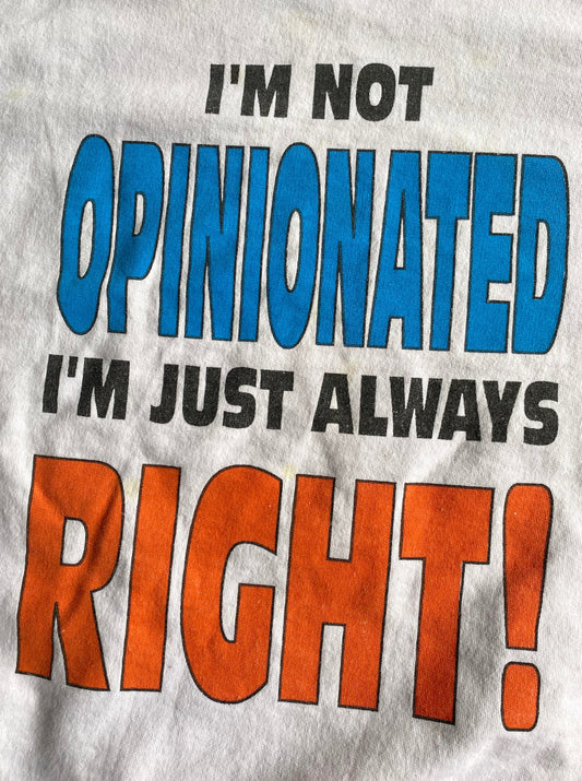 90s vintage I’m Not Opinionated I’m Always Right pullover sweatshirt – medium | graphic sarcasm humor spellout sweater
