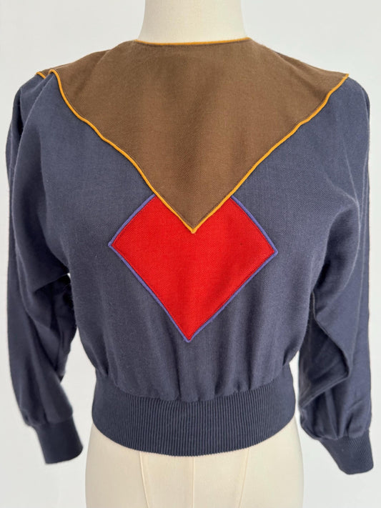90s vintage multicolor abstract print cropped blouse – extra small | made in Japan retro geometric shirt
