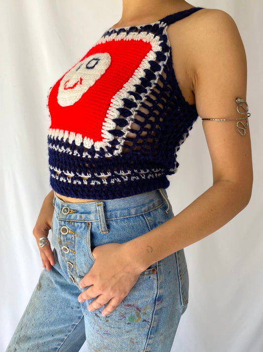 70s vintage handmade blue yellow crochet midi dress – medium, large