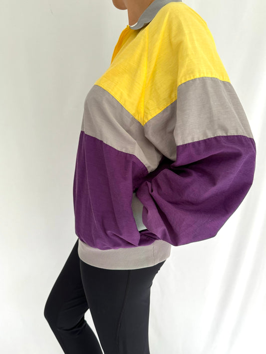 90s vintage multicolor graphic striped long sleeved sweater top – medium | unisex retro quarter zip light windbreaker