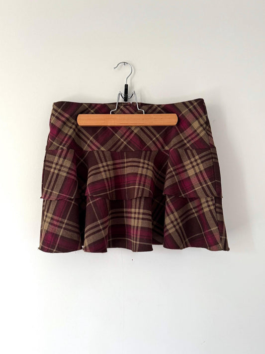 90s vintage multicolor plaid tartan ruffled mini skirt – small medium | preppy grunge pleated short skirt
