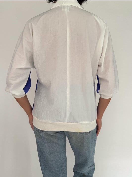 90s vintage multicolor geometric windbreaker blouse – small medium | bright retro bold collared shirt