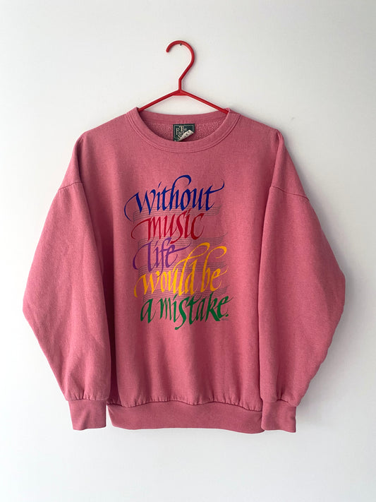 90s vintage pink music lover graphic quote pullover sweater – small, medium | sheet music notes crewneck sweatshirt