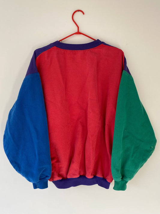 90s vintage rainbow contrast colorblock retro graphic pullover sweatshirt | streetwear unisex mens novelty multicolor sweater