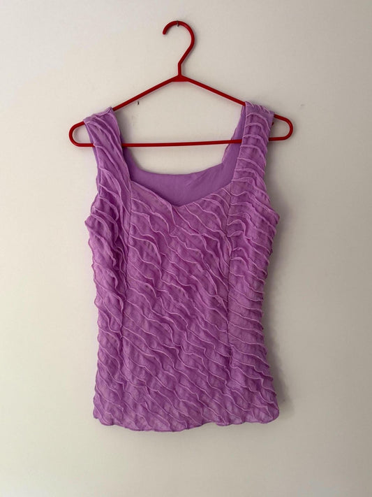90s vintage purple ruffled tank top – medium large | cute frilly coquette romantic stretch sleeveless shirt