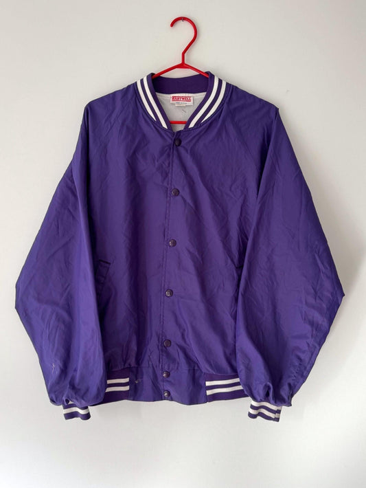 90s vintage purple colorado grape escape bomber jacket – large | made in USA unisex snap button jacket