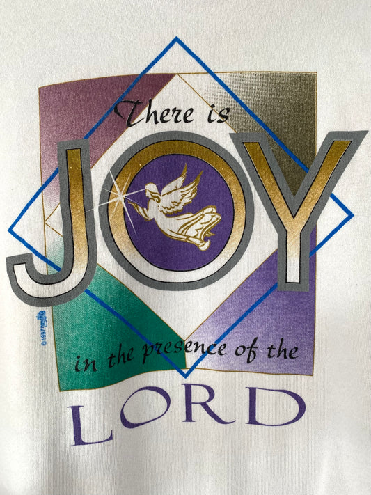 90s vintage white joy of the lord holiday graphic pullover sweater – small | unisex christmas angels cotton long sleeved sweatshirt