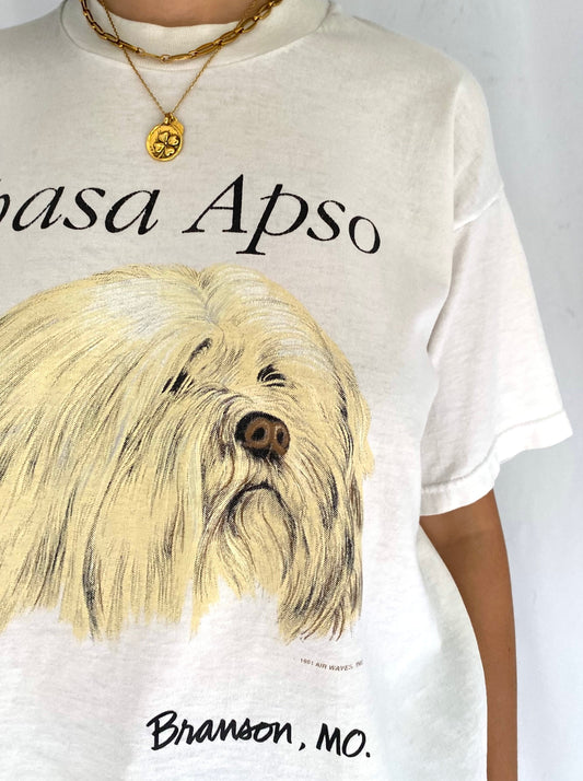 90s vintage white dog lhasa apso graphic tee shirt - large | missouri usa animal unisex cotton tshirt