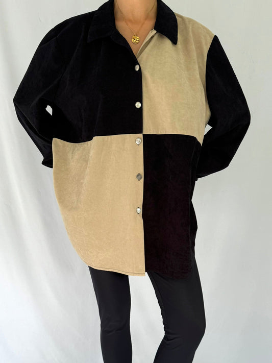 90s vintage two tone graphic long sleeved button up shirt – one size | unisex retro casual collared blouse