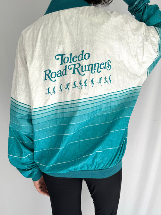 90s vintage turquoise unisex light windbreaker jacket – large | mens toledo road runners retro cycling jacket