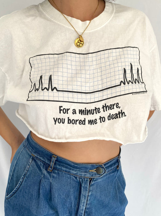 90s vintage white funny you bored me to death graphic cropped tee shirt | sarcastic saying spellout cotton crop top