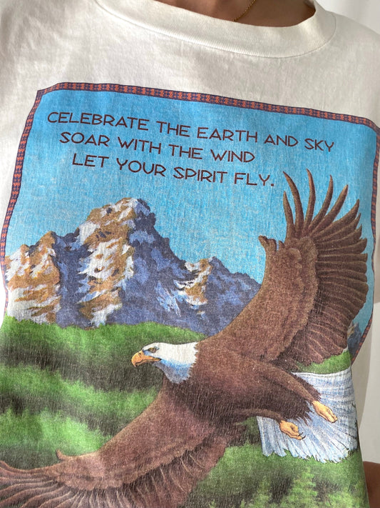 90s vintage white flying eagle cropped tee shirt – medium, large | nature animal cotton crop top