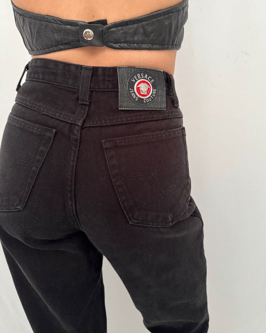 90s vintage versace jeans couture black denim jeans | 26” high waist rise tapered mom pants