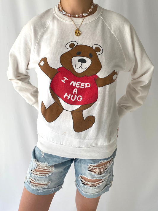 80s 90s vintage I Need A Hug teddy bear pullover sweater – extra small, small | cartoon cute kidcore long sleeve sweatshirt