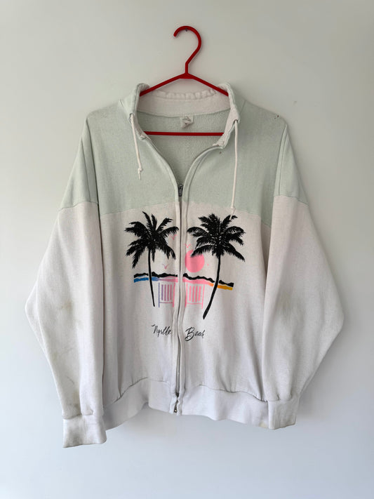 80s vintage myrtle beach retro graphic zip up sweatshirt – large | distressed vacation souvenir palm tree print cotton hoodie sweater