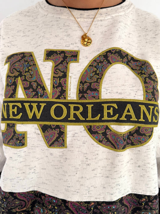 90s vintage grey new orleans unisex graphic pullover sweatshirt – large | retro travel souvenir USA streetwear cozy cotton crewneck sweater