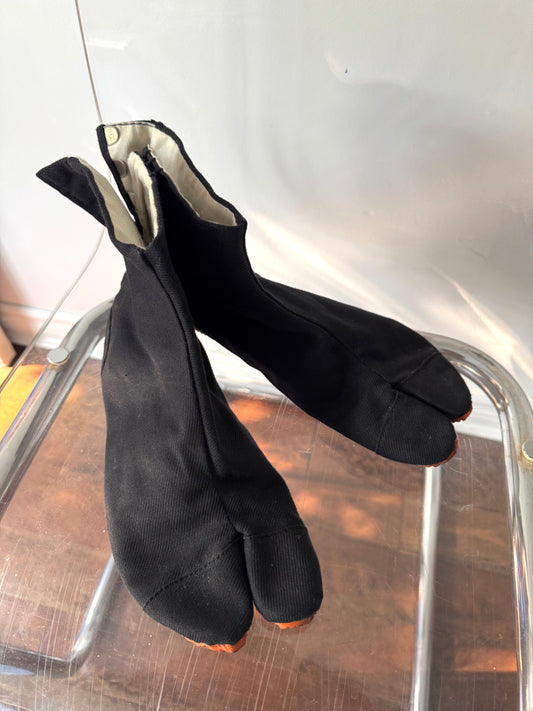 vintage black Japanese split two toed tabi boots – unisex US 7 8, size 25 cm | Jikatabi house slippers ninja samurai shoes