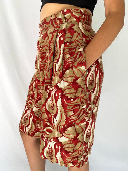 90s vintage abstract paisley long shorts – small, medium | pleated retro print mom cut slouchy wide leg bermuda shorts