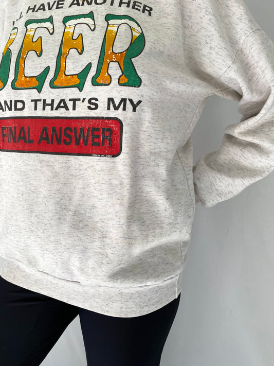 vintage grey beer graphic quote pullover sweater – medium | unisex funny drink phrase crewneck sweatshirt