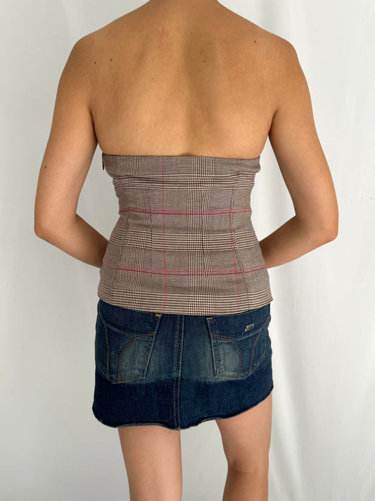 y2k vintage GUESS jeans plaid button up tube top – small | bustier corset strapless mini crop