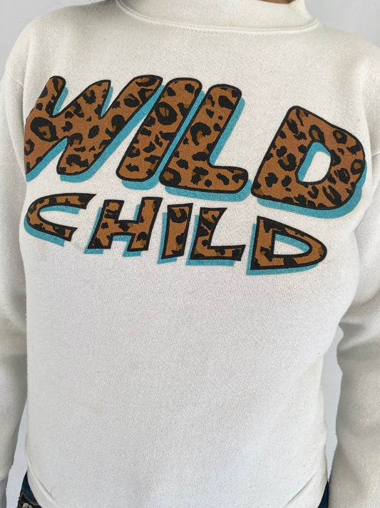 90s vintage WILD CHILD graphic pullover sweater – extra small | sassy spellout crewneck sweatshirt
