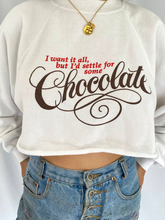 90s vintage I’d settle for chocolate cropped pullover sweater – medium, large | funny cute spellout long sleeved sweatshirt
