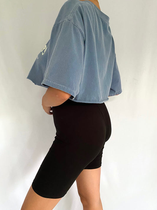2000s vintage blue happy hour drinks cropped tee shirt – medium | graphic cotton spellout tshirt