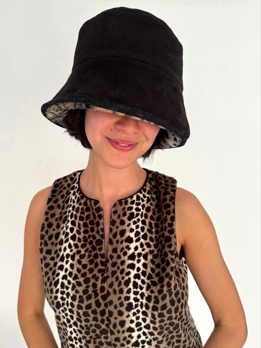 90s vintage animal print fuzzy faux fur reversible bucket hat