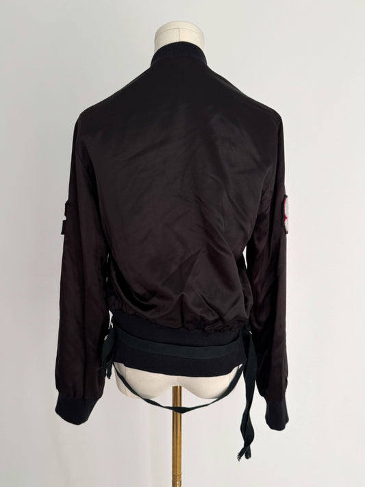 90s vintage black embellished silky zip up bomber jacket – extra small