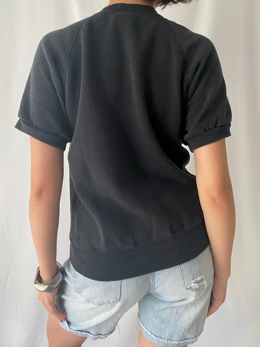 90s vintage black cross stitch horse short sleeved pullover sweater – small, medium | novelty embroidered equestrian shirt