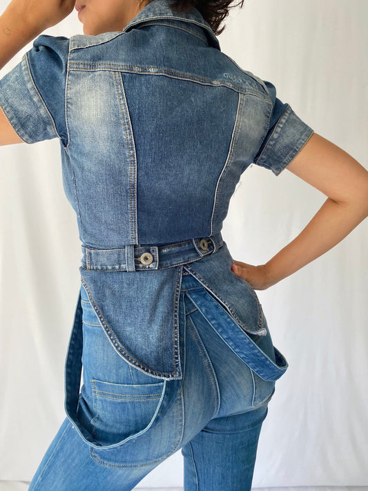 y2k vintage blue denim cropped blazer – extra small, small | guess jeans short sleeved collared jacket