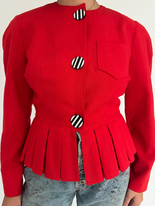 80s vintage red pleated cropped peplum clowncore blouse – small, medium