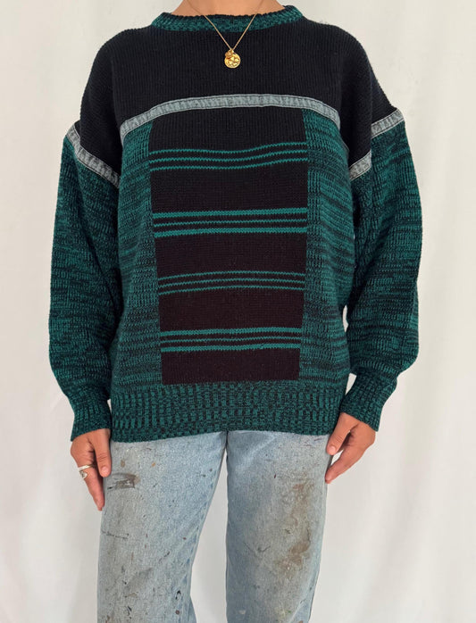 90s vintage green striped eclectic grandpa knit sweater – medium large