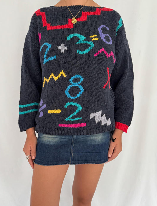 80s vintage novelty abstract numbers graphic knit sweater – small