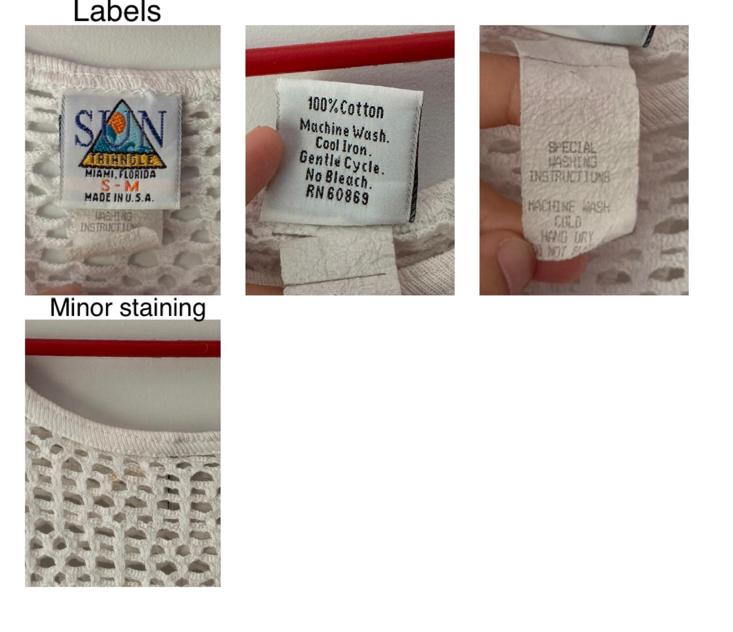 RAD! this unisex vintage tank top “made in the USA” from the late 80s or early 90s has such a fun and bold retro look, with its bright purple fabric panel at the front, and a faded text that spells out “FLORIDA.” the shirt features a cream coloured woven mesh body (slightly see through, as it is an open weave), a crew neckline and wide straps. the fabric is a lightweight 100% cotton that is unlined.