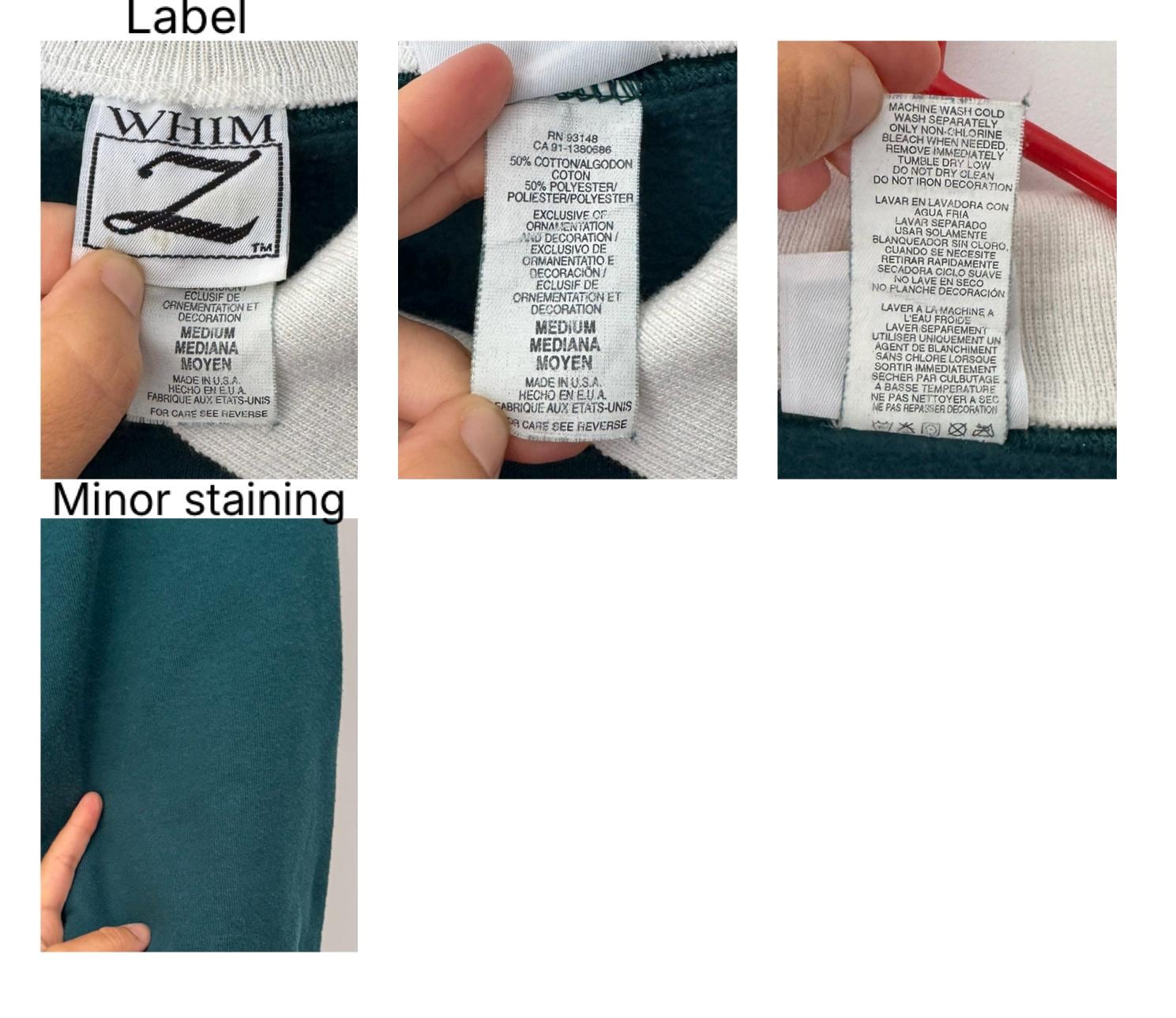 tagged as size medium, and I would say this best fits womens size small or medium. in great vintage condition besides minor staining and light pilling.