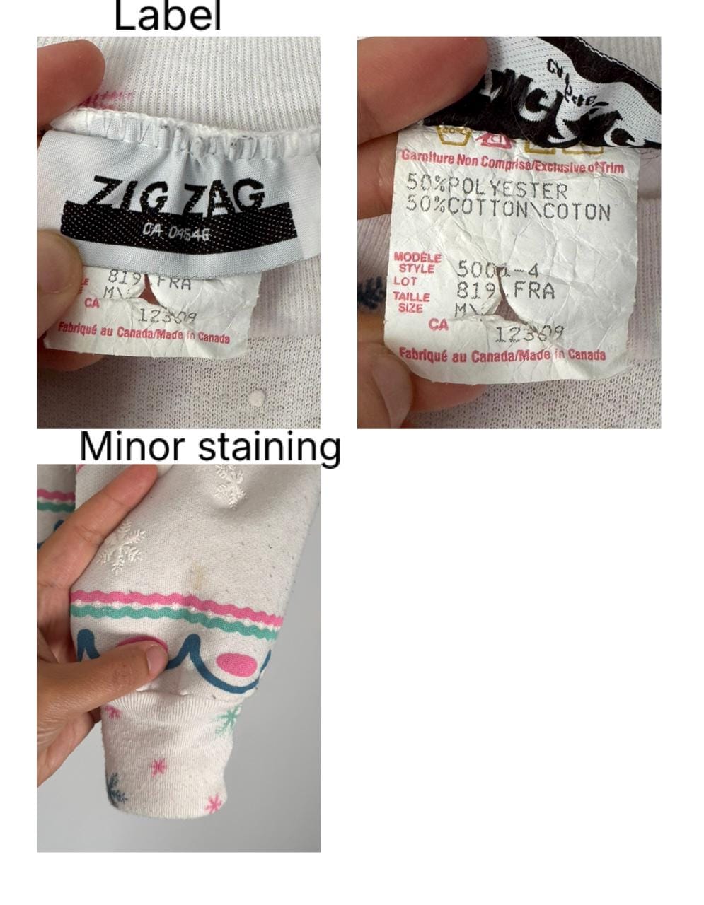 tagged as size medium, and I would say this fits true to size. in fair/good condition besides some colour bleeding, cracking in the puff print graphics, minor staining on one sleeve, and light pilling throughout.